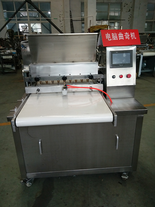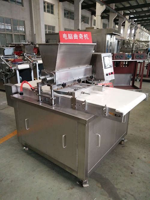 This machine is to extrude dough into different shapes of cookies by rollers.