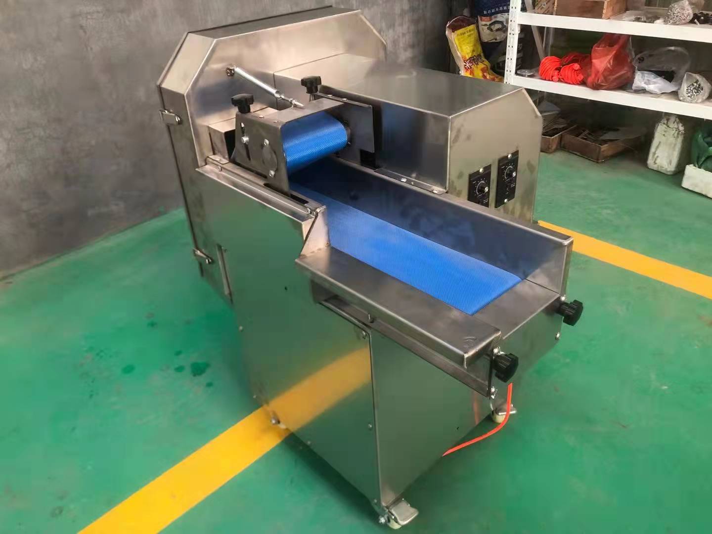 This machine is with frequency function to control the cutting speed and cutting size.